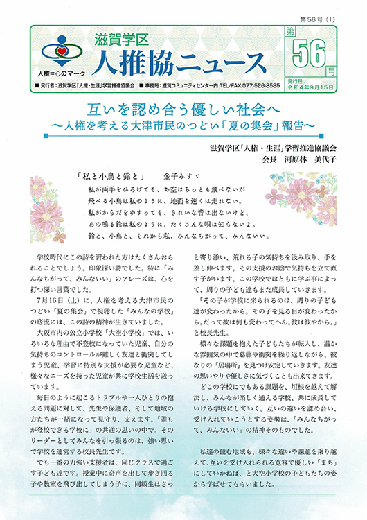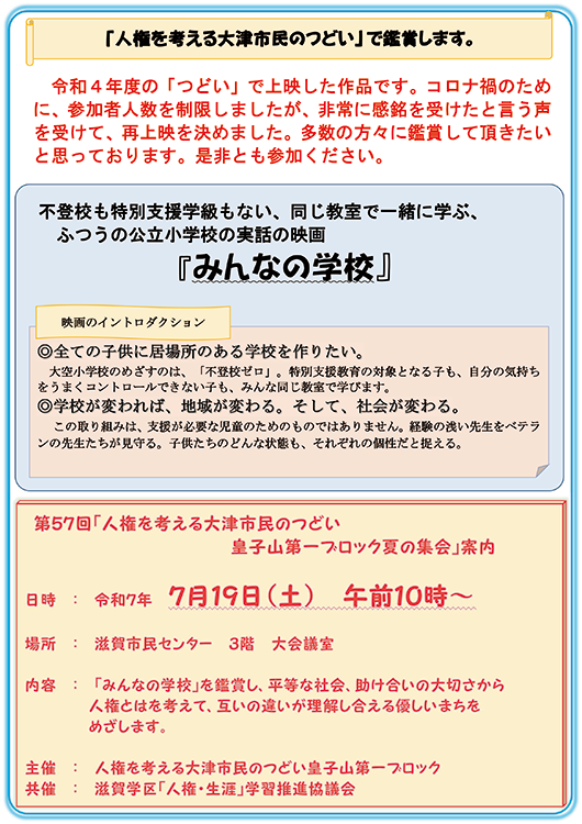 画像クリックで拡大します。(人権を考える大津市民のつどい皇子山ブロック夏の集会)